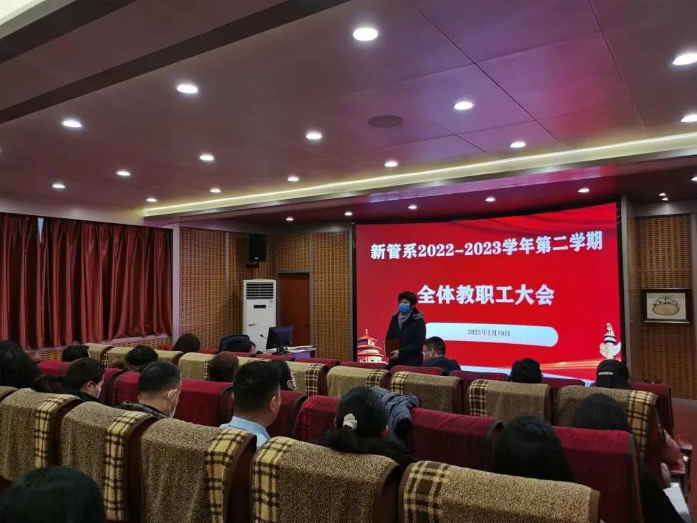 2023年2月10日,新管系在教学楼212召开全体教职工会议。新管系全体教职工参加,新管系党总支书记赵环同志主持会议。