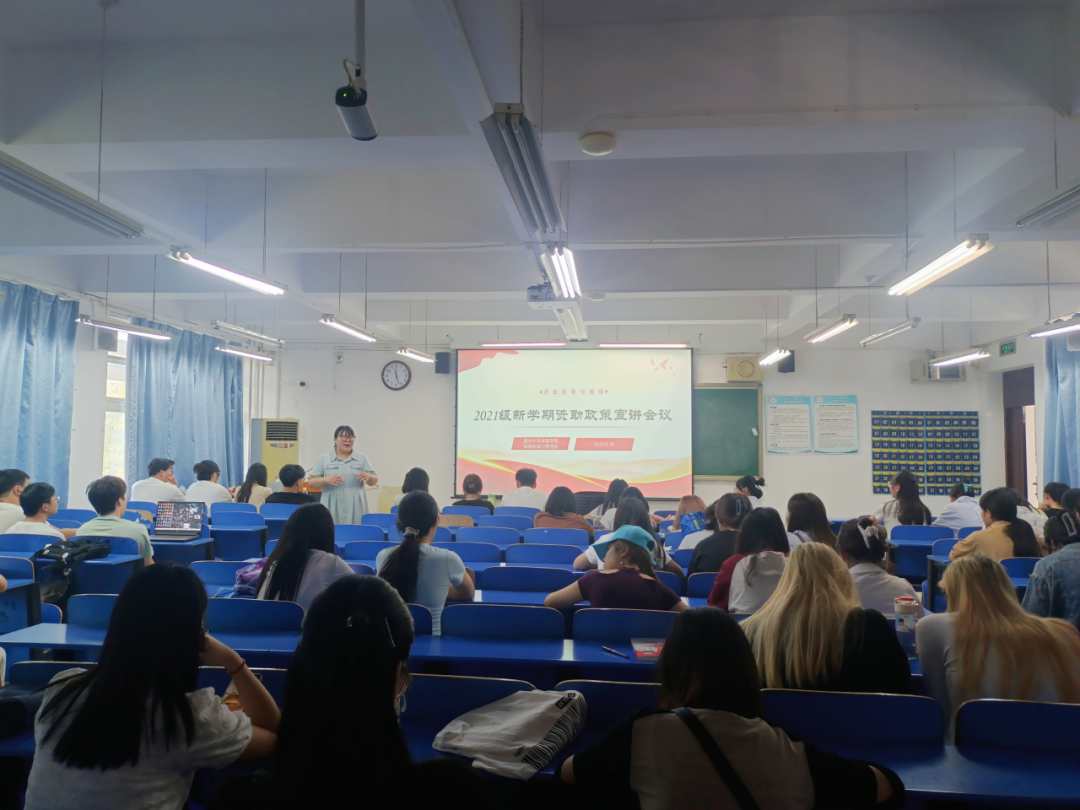 为切实做好学生资助政策宣讲工作,帮助家庭经济困难学生顺利完成大学阶段的学习,我系于开学初在综合楼 406教室开展了新管系21级学生资助政策宣讲会。会议由辅导员张静老师主讲,21级学生参加。