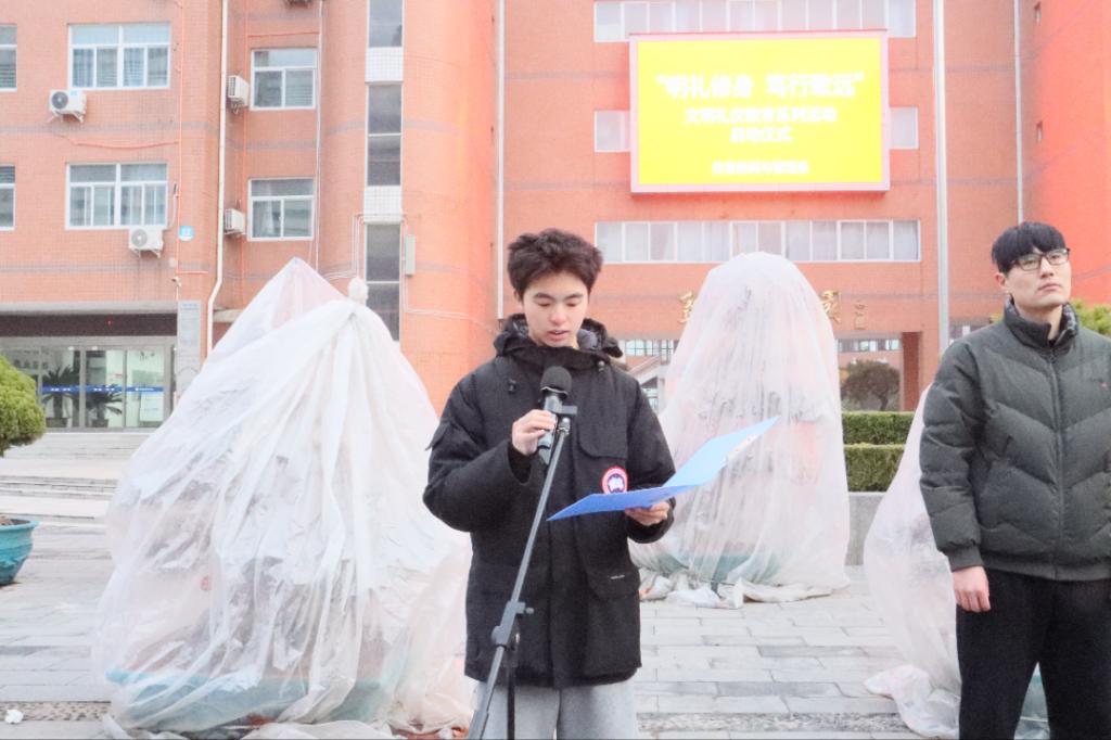 在激昂的氛围中,全体师生进行庄严宣誓。整齐而洪亮的誓言在广场上空回荡,每一个字都承载着师生们对文明礼仪的坚定承诺。