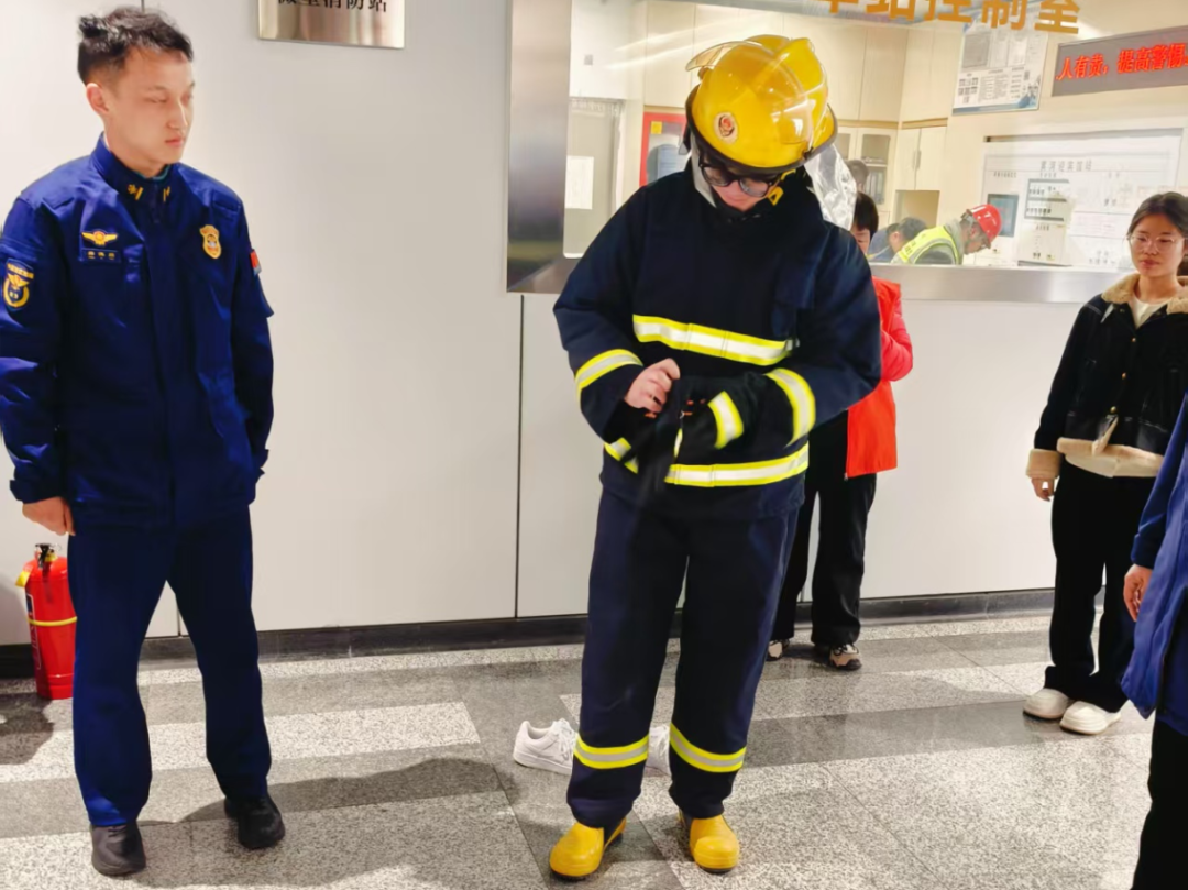 活动现场,志愿者还学习了消防安全知识,观摩消防器具演示过程。