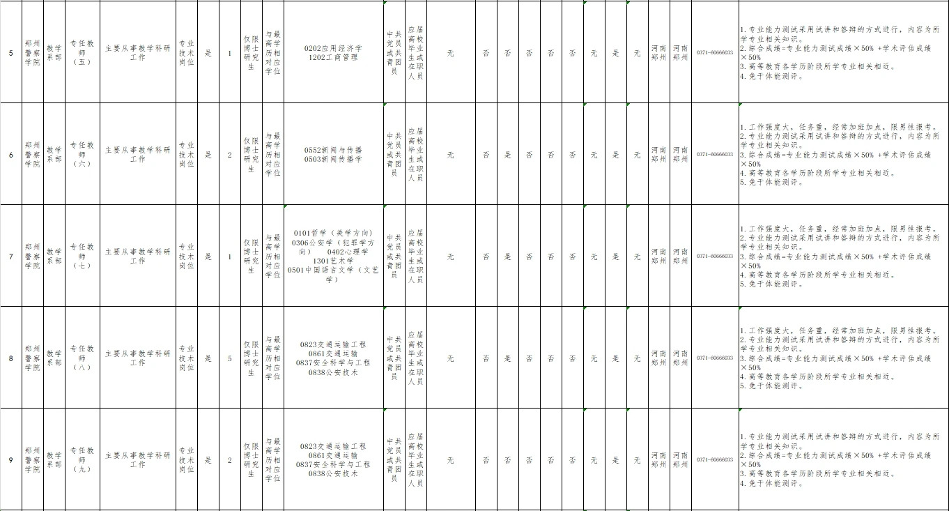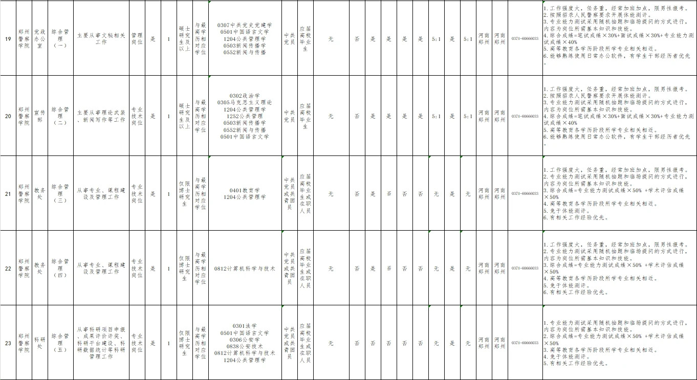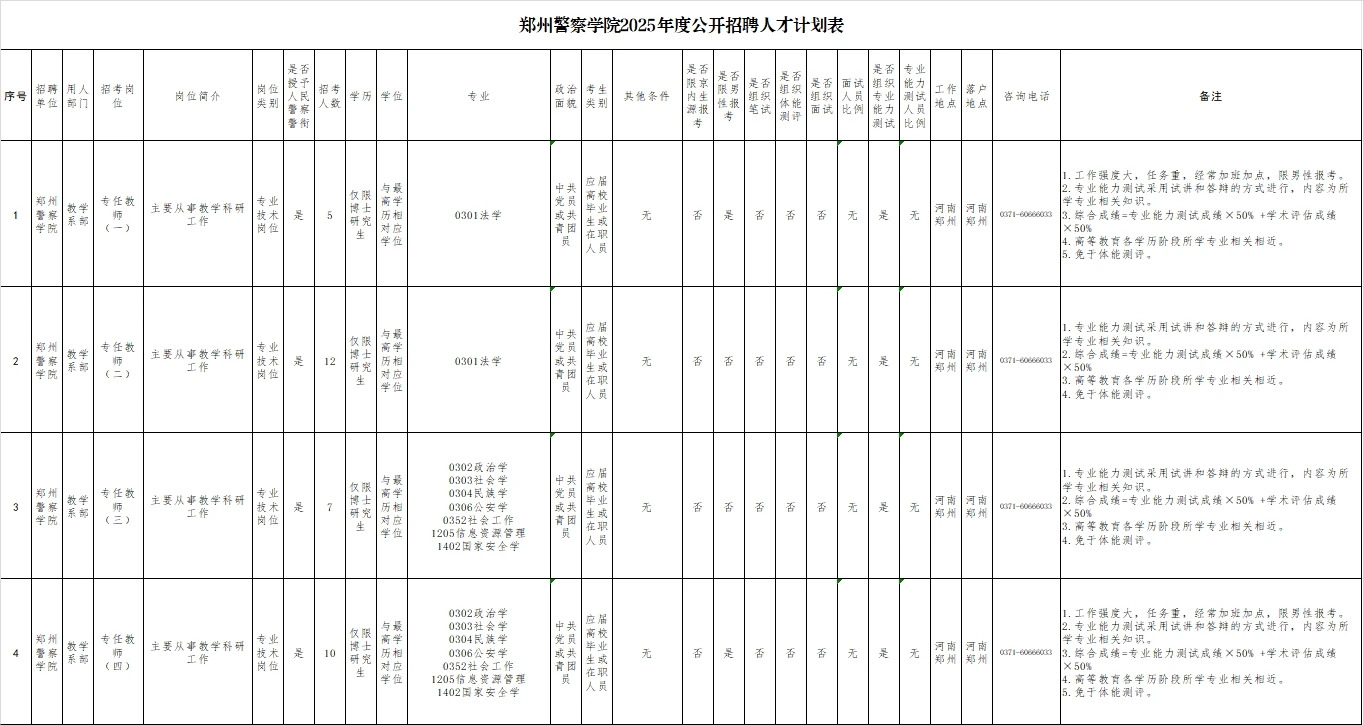 附件:郑州警察学院2025年度公开招聘人才计划表