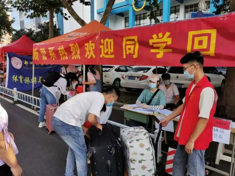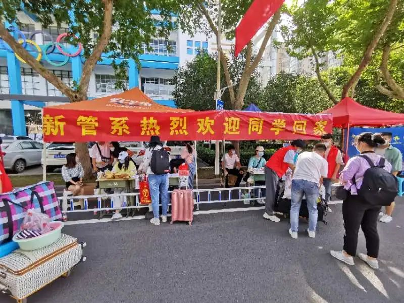 9月5日,新管系邵丽君主任、19级辅导员王松老师,带领着同学们在学校南门举行了迎新活动。学长学姐们登记、发放疫情包、搬运行李等等,为归家的18级提供贴心服务,为新来的19级指点迷津。欢迎同学们终于回家了!魂牵梦绕的家园已经抵达,新的梦想也即将扬帆起航,你满怀期待跋山涉水而来,我满心欢喜等你蹁跹而至。2020是令人唏嘘的一年,我们经历了太多不平凡,正因如此,你与我的相遇,你与自然的相聚变得弥足珍贵。也因为你们的到来,新管家园再添一抹新色,校园也因此变得更加有活力。