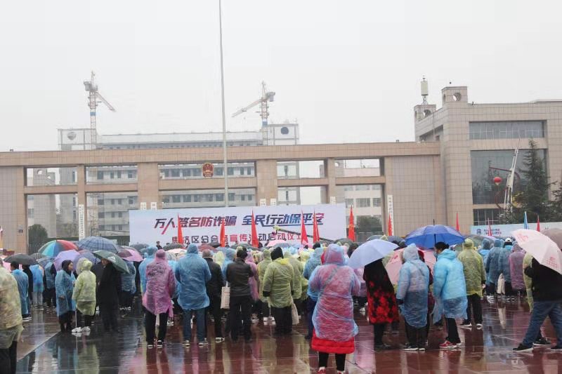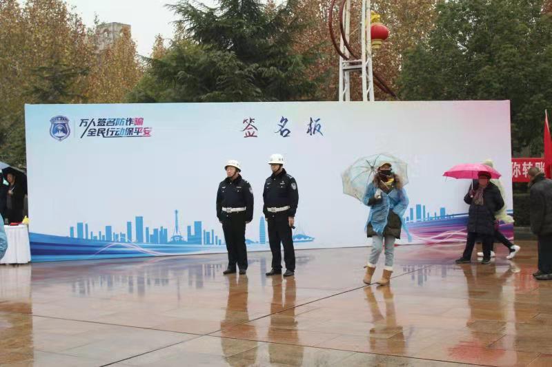 伴随着蒙蒙细雨,我系师生于9:20抵达惠济区政府,跟随张静老师走进惠济区政府门前的大河广场参加“万人签名防诈骗,全民行动保平安”主题防诈骗活动启动仪式。