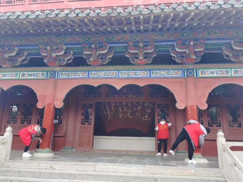 “天波杨府菊花展是历年来开封菊花文化节的主会场之一,景区布景创意新颖,主题文化鲜明,自10月18日展出菊花以来,每个周末很多游客都慕名而来。这个周末最不一样的就是来了一群‘特殊的游客’。他们打扫卫生、维持秩序、文明劝导游客,比我们志愿服务团队的人都专业。”开封市天波杨府副主任牛亚军看着正在做志愿服务的同学们说到。