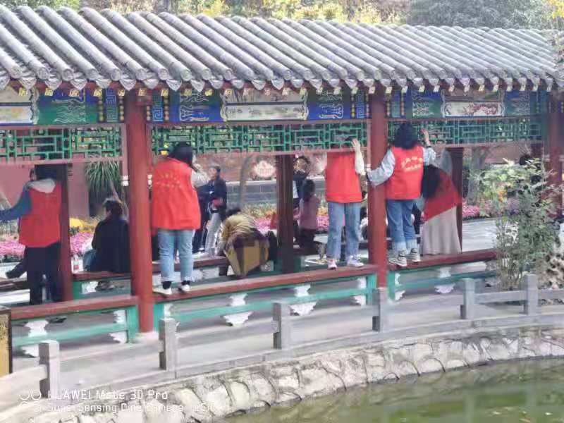 据悉,这帮‘特殊的游客’来自郑州大学体育学院。11月9日,郑州大学体育学院体育新闻与管理系16名学生早上7时准时从学校出发,前往开封的天波杨府。10点,抵达地点的他们马上投入工作:在天波杨府入口进行指引;搀扶游客上下台阶;对现场的菊花知识进行讲解并引导游客游览,让他们可以在花香袭人的菊海中尽兴畅游,感受古城开封浓郁的宋文化风韵。戴着“文明劝导员”袖章的王雨同学说:“这次志愿行动是我们系学生会组织的,一共来了16名同学,团总支负责人张静老师亲自带队。‘青春你我,争做志愿者’是我们这次活动的口号,我主要负责为游客提供指引服务、提醒游客文明参观,在此过程中,我深刻理解了‘帮助他人,快乐自己’这句话的深刻含义。下个周末我还会参加。”