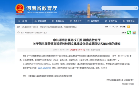 2019年7月30日,郑州大学体育学院体育新闻与管理系“公益学堂”获得全省普通高校第三届“校园文化建设”三等奖。