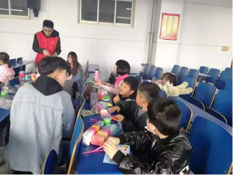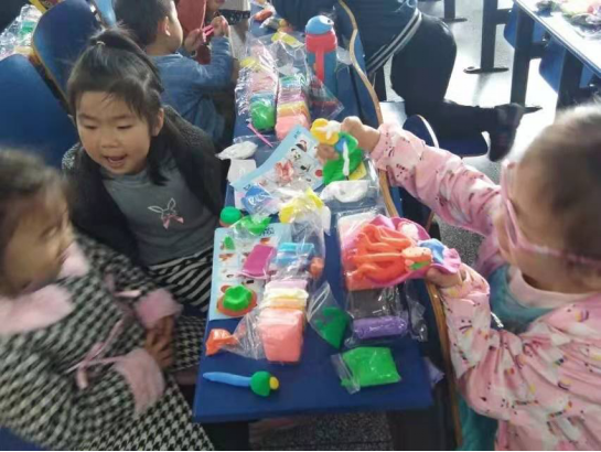 2019年5月28日上午10点,公益学堂的志愿者老师们为孩子们辅导作业、传授英语口语,带着小朋友们进行了轻土创作。