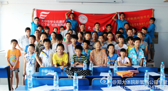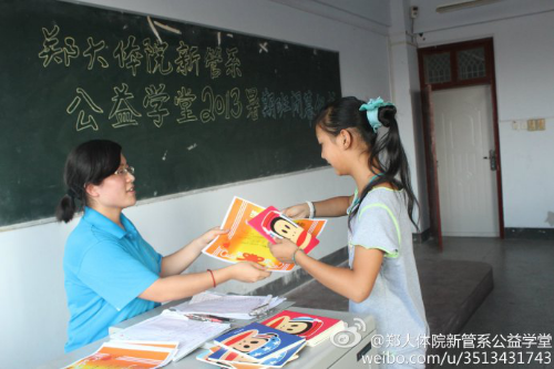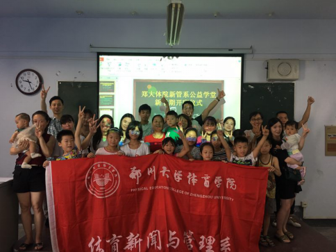 2015年7月9日上午9点,郑州大学体育学院体育新闻与管理系的“公益学堂,共同成长”在志愿者们的组织下于教学楼楼前成功举行开班仪式。