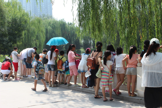 2014年7月20日上午9点,参加“公益学堂,共同成长”的志愿者们组织中小学生出去游玩,在此次活动当中,志愿者们所明白的是:无论什么时候,一定要友爱互助,共同进步。