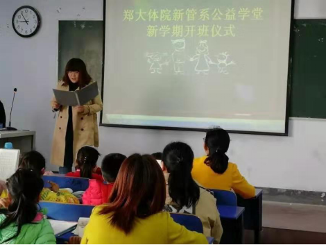 2016年3月1日上午9点,郑州大学体育学院体育新闻与管理系“公益学堂,共同成长”的10名志愿者与20多名学生一起在教学楼402教室参加了公益学堂开班仪式。