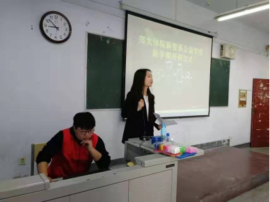 2019年4月13日,郑州大学体育学院体育新闻与管理系“公益学堂,共同成长”开班仪式于9点举行。本次开班仪式由学生代表刘双玲主持、系团总支负责人张静老师发言。