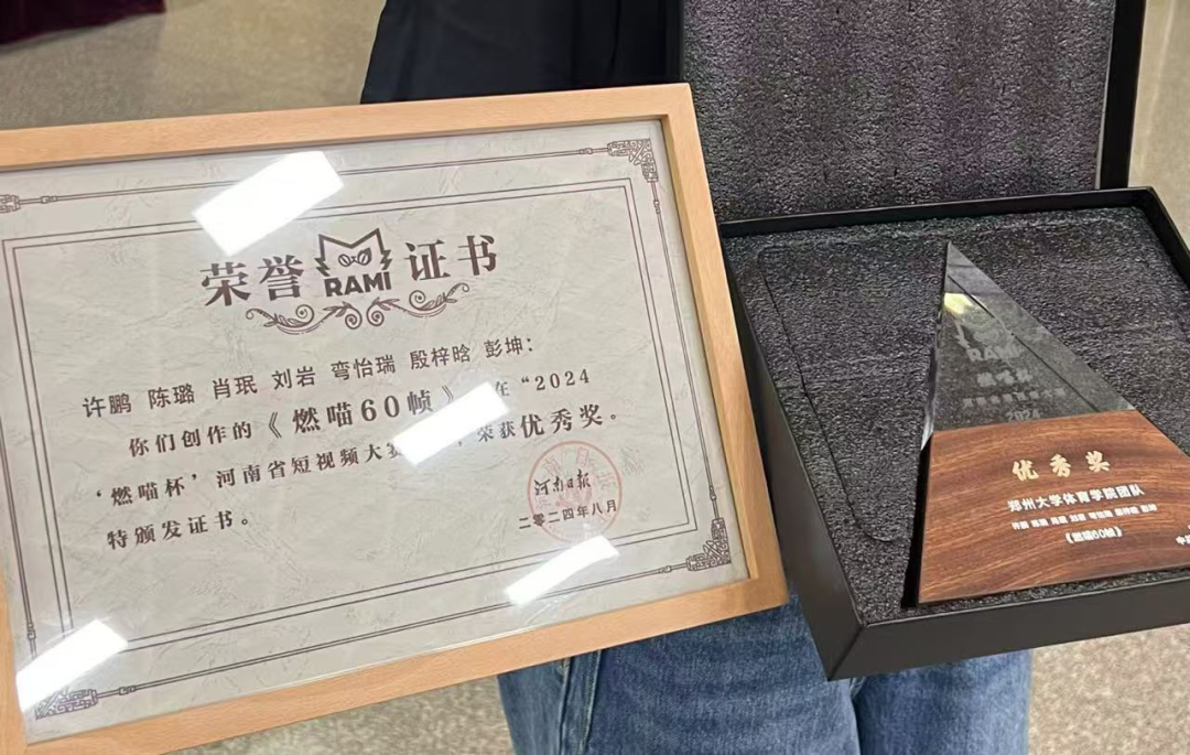 2024年10月18日,由河南日报社和濮阳市委宣传部联合主办的2024“燃喵杯”河南省短视频大赛暨中国·濮阳咖啡消费节的颁奖仪式在河南报业大厦隆重举行。由我系师生组建的河南体院代表队凭借出色的作品荣获本次大赛优秀奖。