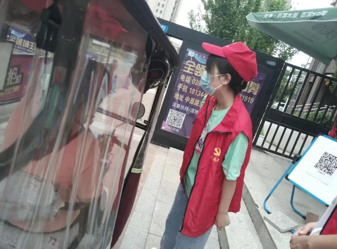 濮阳市清丰县启明社区,是志愿小分队成员刘若楠同学所服务的社区。其主要工作有:提醒并监督进出人员扫码、帮助需要做核酸的人员进行信息录入、和其他工作人员一起挨家挨户上门进行排查和信息确认。