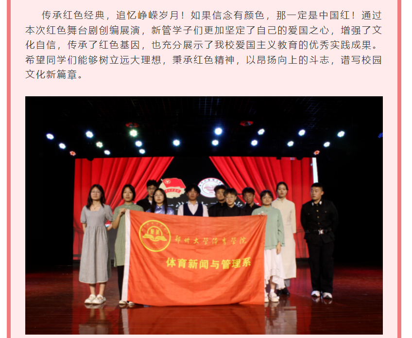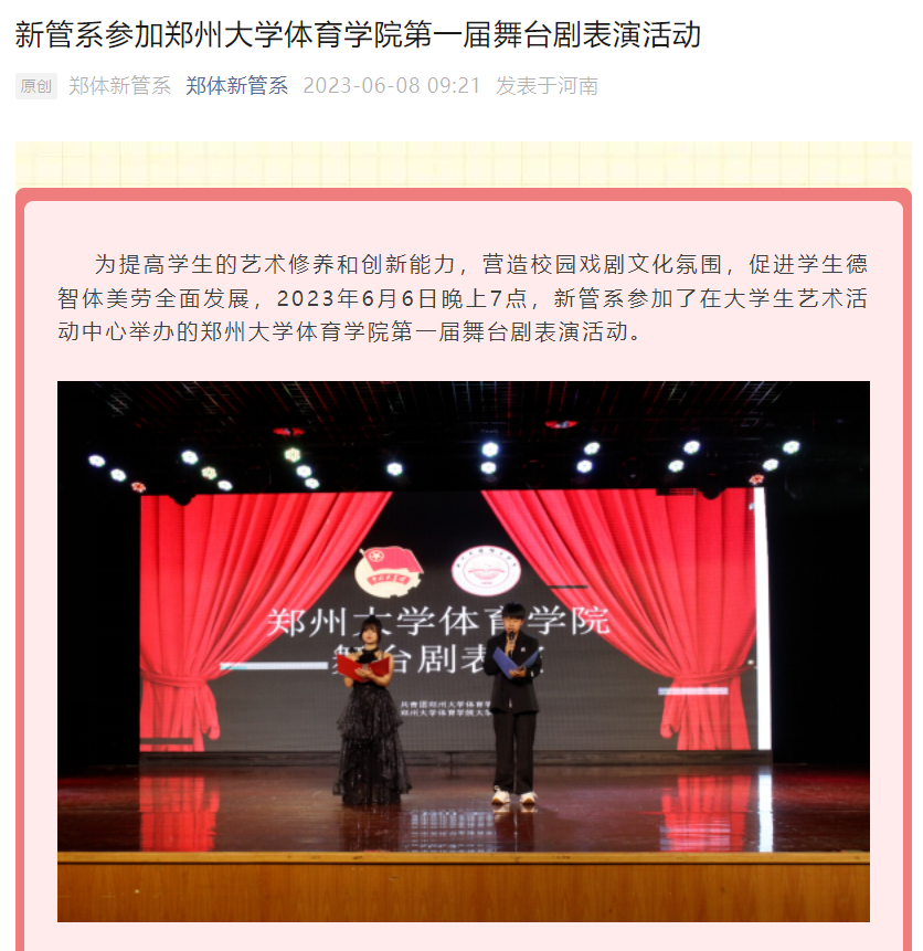 4.我单位青年教职工张静老师指导学生参加郑州大学体育学院第一届舞台剧表演活动。