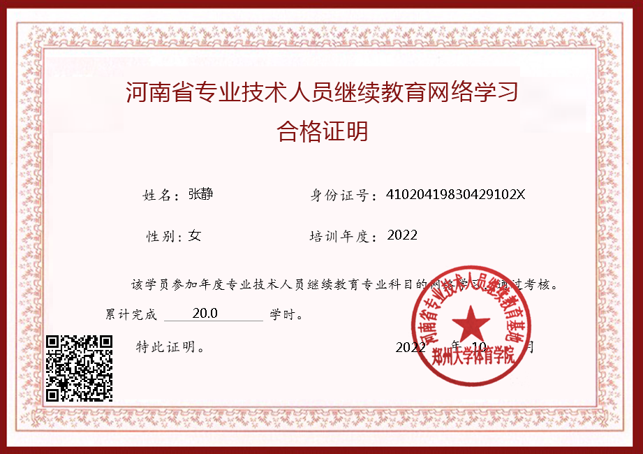 1.我单位张静老师参与河南省专业技术人员继续教育网络学习培养工程,并顺利结业,完成考核。