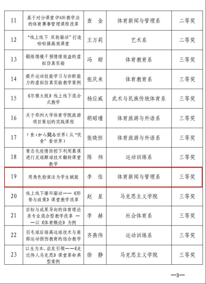 6.我单位青年教职工李佳老师参与省级一流本科课程混合式课程《体育赛事管理》。