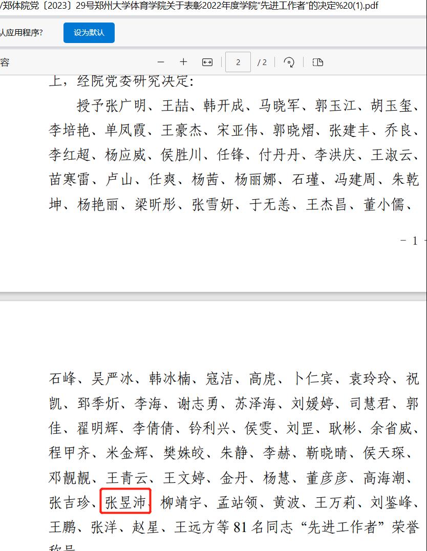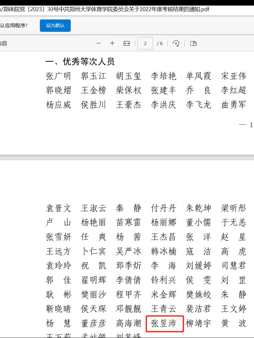 1.我单位青年教职工张昱沛老师在2022年度学院人事考核工作中被评为“优秀等次”和“先进工作者”。