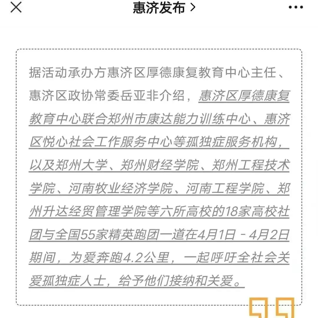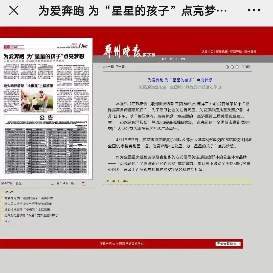 1.我系团总支组织、参与的“为爱奔跑 为‘星星的孩子’点亮梦想”活动受到郑州晚报、惠济发布等多个媒体的报道宣传,并获得惠济区残工委、惠济区残联相关负责人的高度评价。