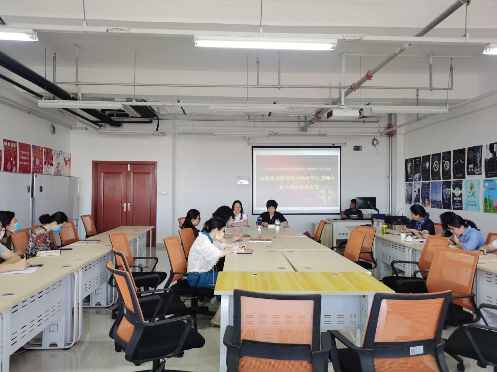 2023年7月上旬,体育新闻与管理系党总支组织在体育产业实训室集体学习研读《习近平新时代中国特色社会主义思想学习纲要(2023年版)》和《论党的自我革命》等有关篇目。